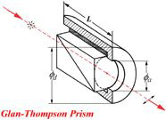 Our Glan Thompson Polarizers are utilized in design of low-power applications, are usually used where large field of view and high extinction ratio are important. Their wider field angle allows the designer to increase prism throughput in an optical system. They are made from the highest grade calcite and cemented together using a UV epoxy. The optic axis is parallel to the entrance window and prism angle thereby providing a larger field of view than Glan Laser / Taylor designs. The ordinary ray is the output ray and the extraordinary ray is absorbed on the escape window. For enhanced UV transmission, we offer optically contacted Glan Thompson polarizers.