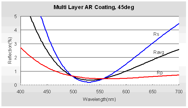 Multilayer Antireflective Coatings “V” type multilayer AR Coatings 0°:R<0.25%@Center Wavelength